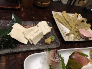 百姓豆腐の冷奴と最近ハマりの行者ニンニクの天ぷら。
