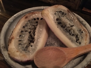 味噌の塩味とあったかいアケビの皮が、果物に感じない。