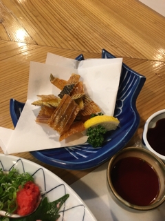 まずは、ビールとお通しを堪能しながら、お店オススメのお刺身を待つ。