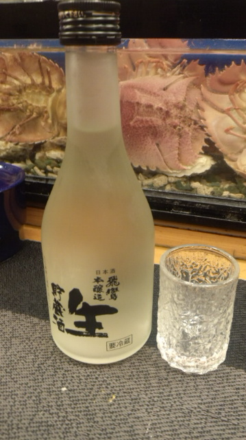 ということで、オカミさんに平戸のお酒「飛鸞(ひらん)」とサバの生き造りをお願い。