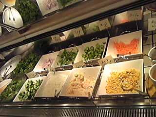 サラタは豊富で、デザートは、デザートピザが2種類ぐらい(実はこれがかなり美味しい。凝っています)と、ゼリー2種類、プリン系(パンナコッタ的なもの)、ケーキ系2種類ぐらいでした。