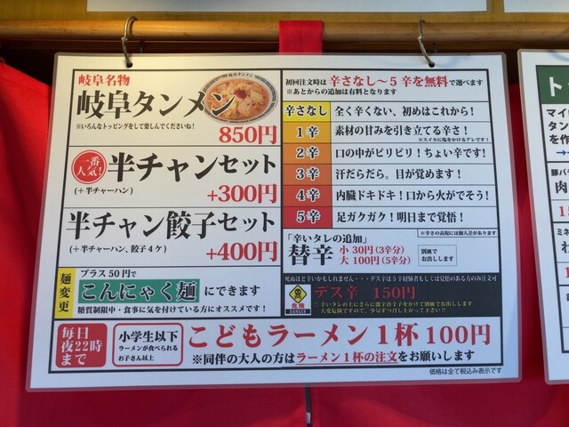 カウンターで「岐阜タンメン 2辛」を注文。そんなに辛くなかったです。