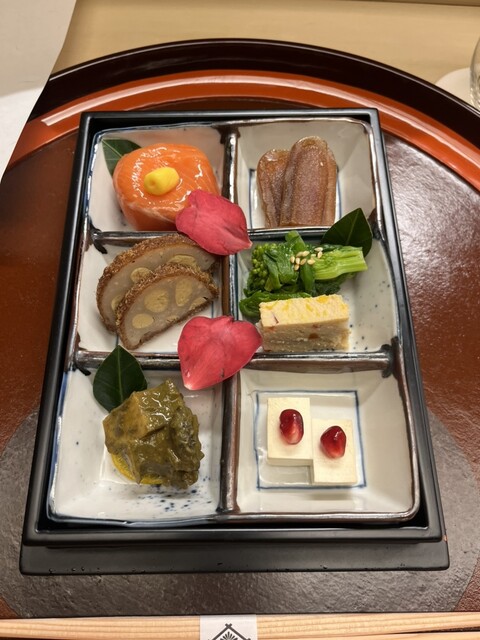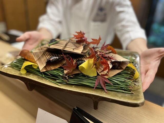 四季の食材を使うのはもとより、秋は銀杏の葉を散らしたり、冬は柚子の皮を器にしたり。小さな口取りの一つ一つが作品のように美しく、毎回の楽しみです。