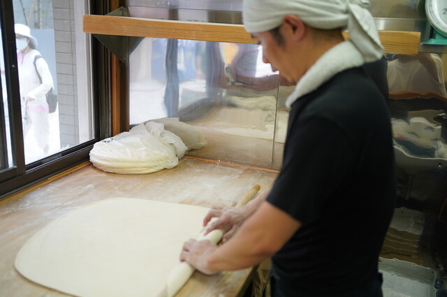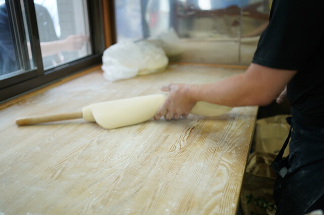入口のすぐ側ではうどんを打ってる様子。手打はいいことなのですが、イマイチ手際が悪い。
