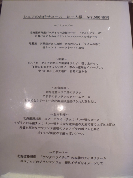 夜はアラカルトとコースが選べますが、本日はコース+アラカルトでお願いしました。
