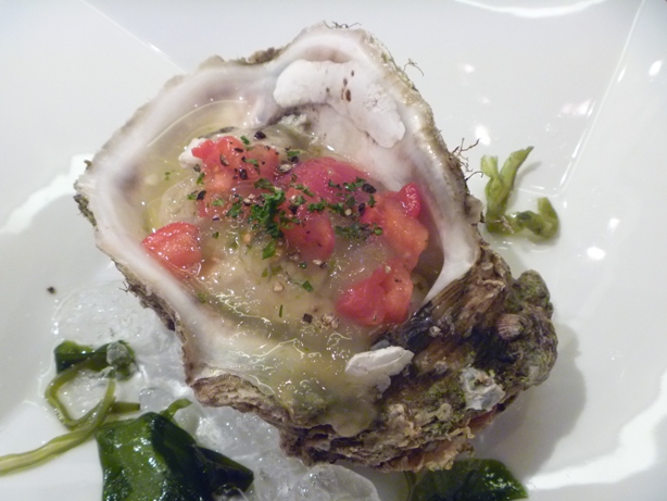 尾鷲産 天然ガキの冷製 昆布のジュレ ライムの香で