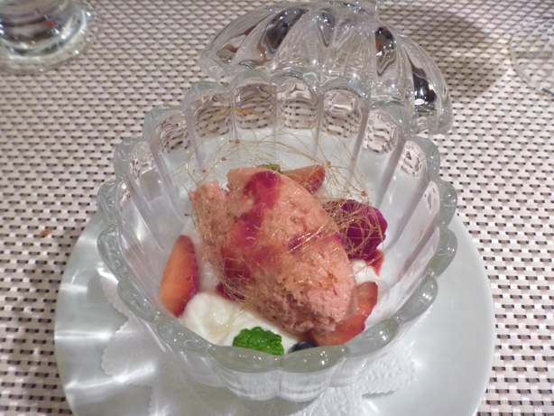 ブラマンジェのとろみ具合とアイスのシャリシャリが美味しいですね