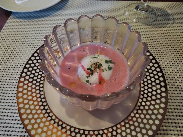 中にはさいの目にカットされたビーツが入っていて宝石のようでした。