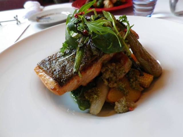 身の厚いサーモンは表面が香ばしく中身はジューシー