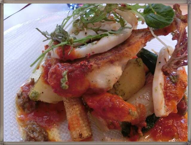 お野菜の中に埋まっているのは表面をパリッと香ばしく焼かれた鯛