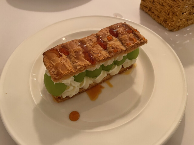 ◆デザートは、焦がし林檎の重ねパイ、昔風プリン、アルザス風自家製のチーズ