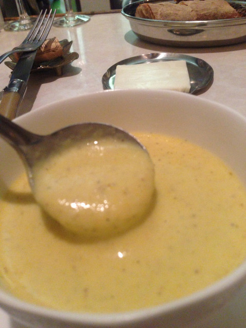 ポール・ボキューズのスペシャリテにもなっているリオンの郷土料理。じっくり炒め、素材の旨味を余すところなく引き出し、フレンチの真髄たるブイヨン、パンにチーズを使用したシンプルな料理で、ベルジェさんのスープはまさに原点にして頂点。