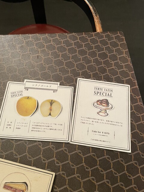 林檎も様々な品種があるが、季節ごと旬の林檎を使用して季節限定のタルトタタンがあり、この時はシナノゴールド。