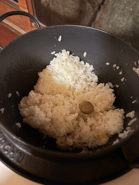そして栗ご飯が炊けたので先ずは炊き立て直ぐを食べてみてという事で一口だけ頂きます。