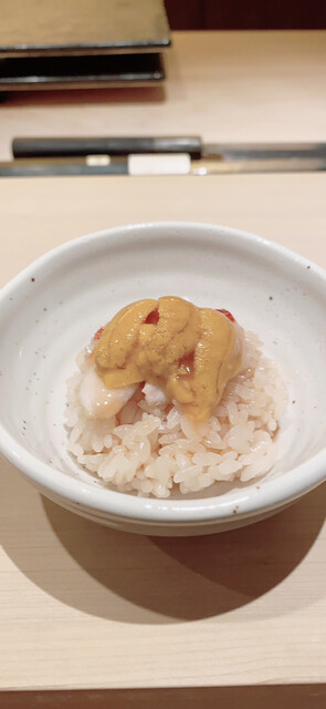 雲丹と卵かけご飯〜卵は筋子を裏ごししたもの