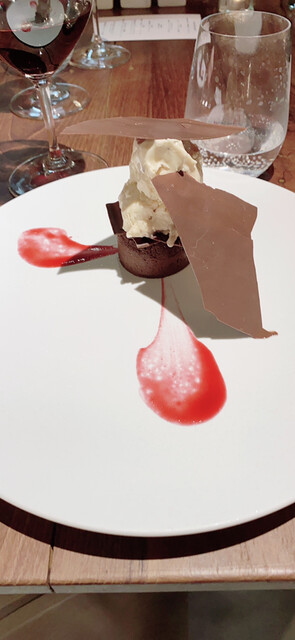 デザートはフォンダンショコラの上にアイスがのっていて、温かいのと冷たいのバランスが楽しい。