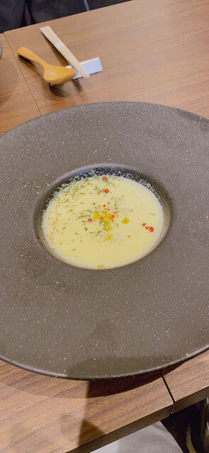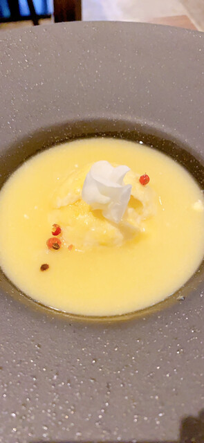 ・ホワイトトリュフととうもろこしのスープ〜ホロホロ鳥でとった出汁