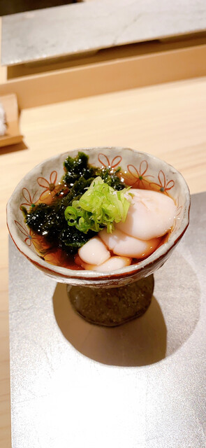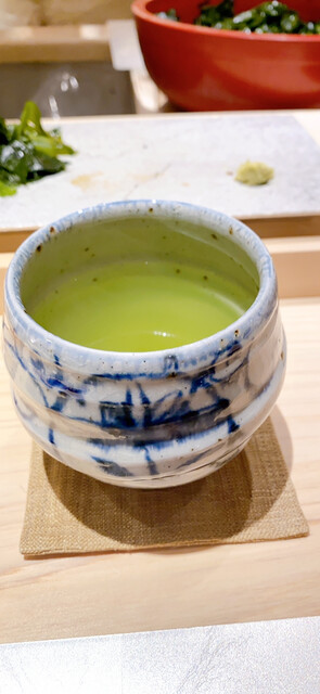 L字カウンターで大将がどの席からも見えて次に何が出てくるか楽しみながら。