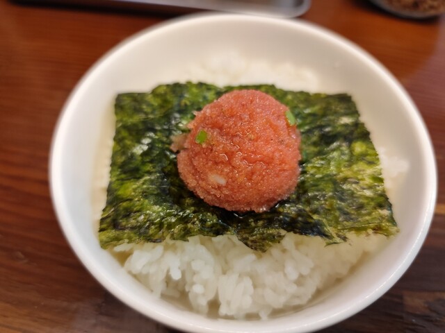 サービスとは思えないクオリティで、ごはんの上には韓国のりと、ほんのりごま油の香りが立つ明太子がのっています。