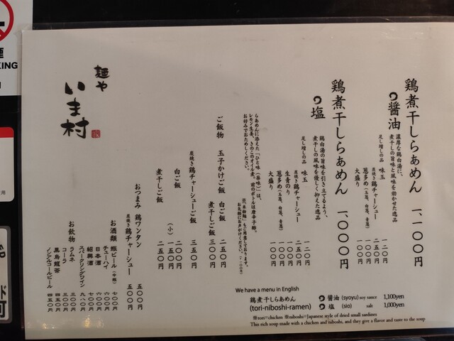 鶏煮干しらぁめん 塩+玉子かけ煮干しご飯を注文しました。