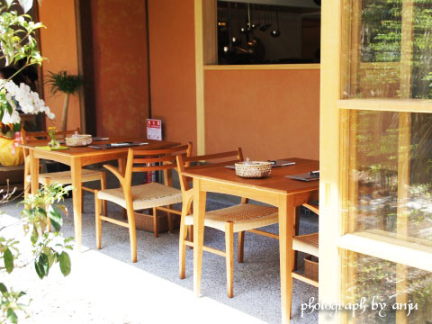 外から見えてた中庭が楽しめる厨房横のテラス席。。。