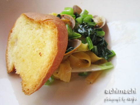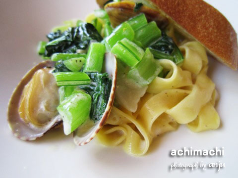 パスタは“自家製タリアテッレ アサリと蕪のクリームソース”