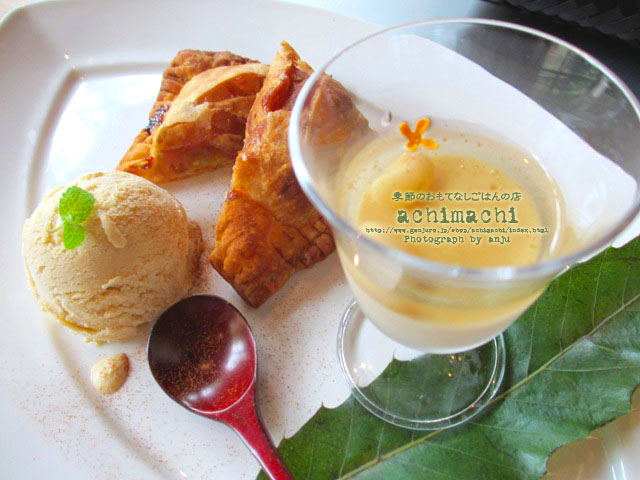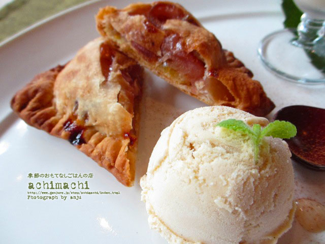 アップルパイ バニラアイス添え 白いんげん豆のプリン 桂花シロップ