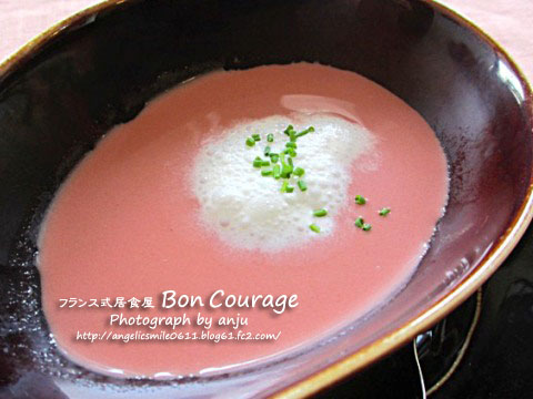 新玉ねぎとビーツの冷たいスープ