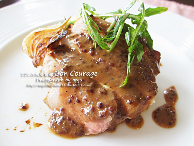 私はお肉料理で豚肉のグリル 紫マスタードソース