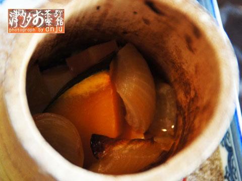 中には、玉葱、人参、カボチャ、海老、イカ、鶏肉~
