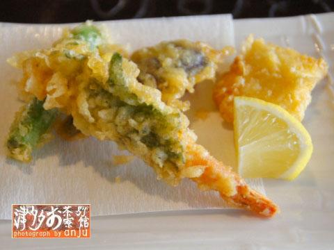 天ぷらは海老のシソ巻き、ししとう、茄子、ハモ