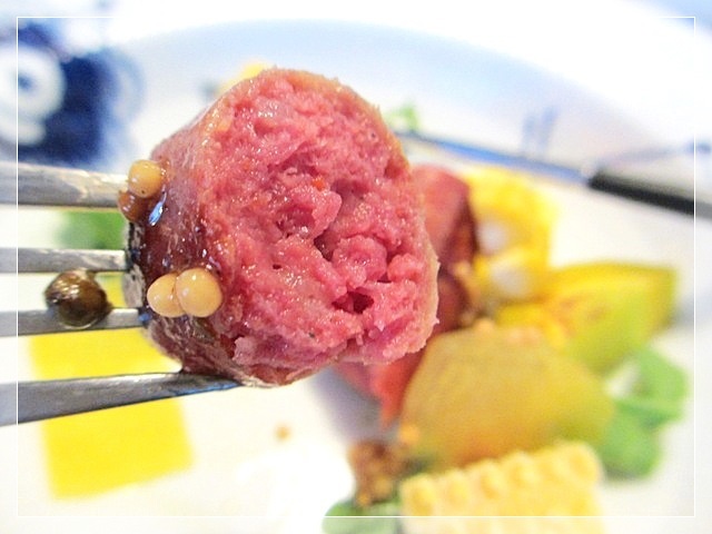 ソテーされたズッキーニと生のとうもろこしが添えられてました。