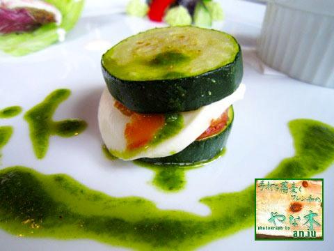 ☆ズッキーニとモッツァレラチーズのミルフィーユバジルソース添え、