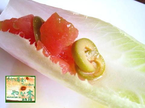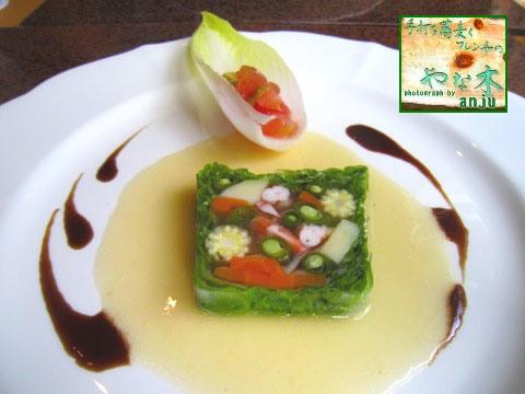 ☆前菜は海老と野菜のテリーヌ チコリ添え フルーツソース