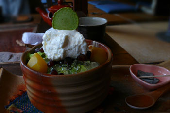 自家製の抹茶やコーヒー、紅茶のアイスクリームやゼリーが入っています。