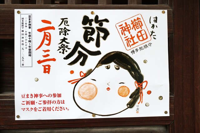 毎年節分前後の時期(1月下旬から2月10日頃)は、おたふく面の見物や厄除けの縁起物を求める参拝客で非常に込み合います。