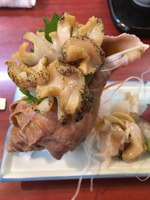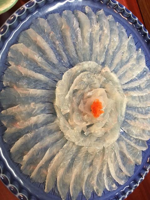 皮剥ぎの刺身と穴子の刺身が運ばれてきた