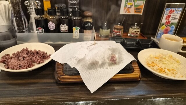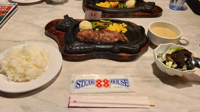 テンダーロインステーキ150gをミディアムレアで頼み、ビュッフェを付けました。