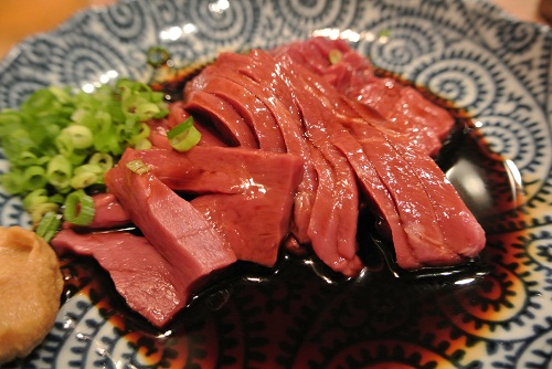 ■レバ刺しとセンマイ刺し:レバ刺しが美味しいのなんのって…。センマイも大盛り!