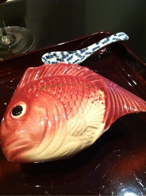 鯛の可愛らしい入れ物には自家製のお漬物