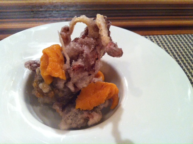 【2012.4.23】前菜:ミミタコのフリット、ウニ添え