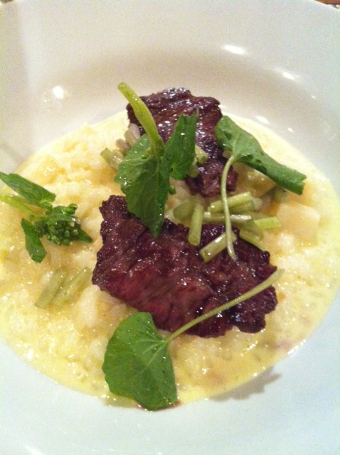 【2012.5.26】わさびと筍のリゾット 熊本産馬のハラミ添え