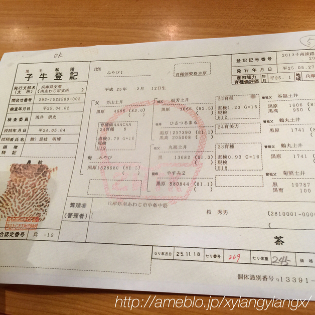 本日の特選Meatは個体識別番号のついた銘柄牛。
