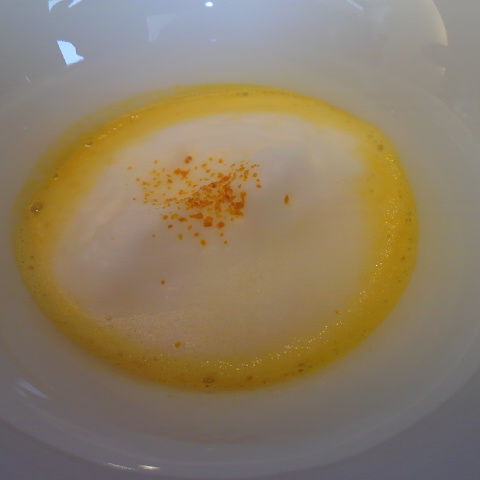エスプーマがたっぷりで黄色と白のコントラストがキレイ。