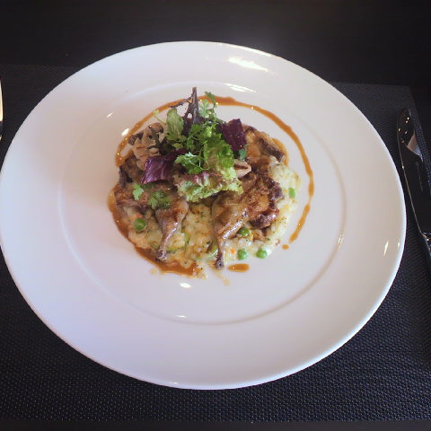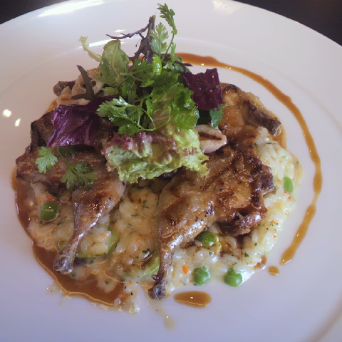 かりっと焼かれた鶉に香ばしいソースに魚介風味のリゾットと不思議と合っていました!