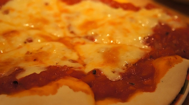 〆にピザ...。クリスピーとパンの中間な厚みでトマトソースとチーズがマッチしてました。