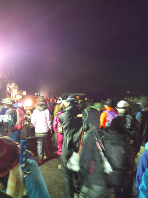 山小屋を出発して6時間。日の出30分前に山頂に到着。とにかく風が強くて真夏にもかかわらず寒い!!!