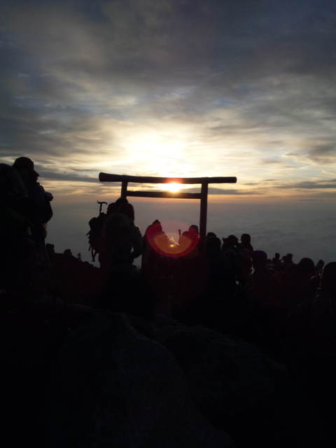4時半頃。雲海から太陽がゆっくりと顔を出してきます。ご来光を待つ人からは「おぉぉぉ…」という声。