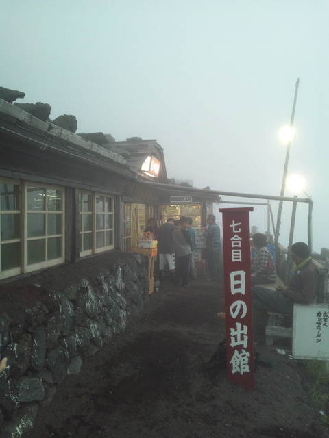 昼過ぎに5合目を出発して夕方には7合目の「日の出館」に到着。すぐにカレーを食べて仮眠。夜9時過ぎに山小屋を出発。