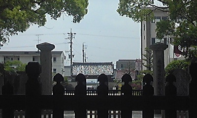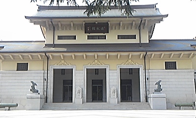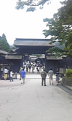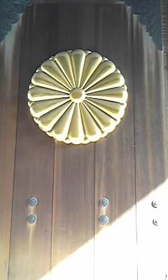 鳥居をくぐった後は、大きな菊の御紋がお出迎え